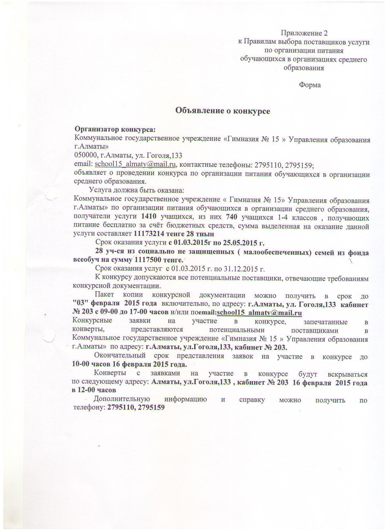 Конкурсная документация 2015