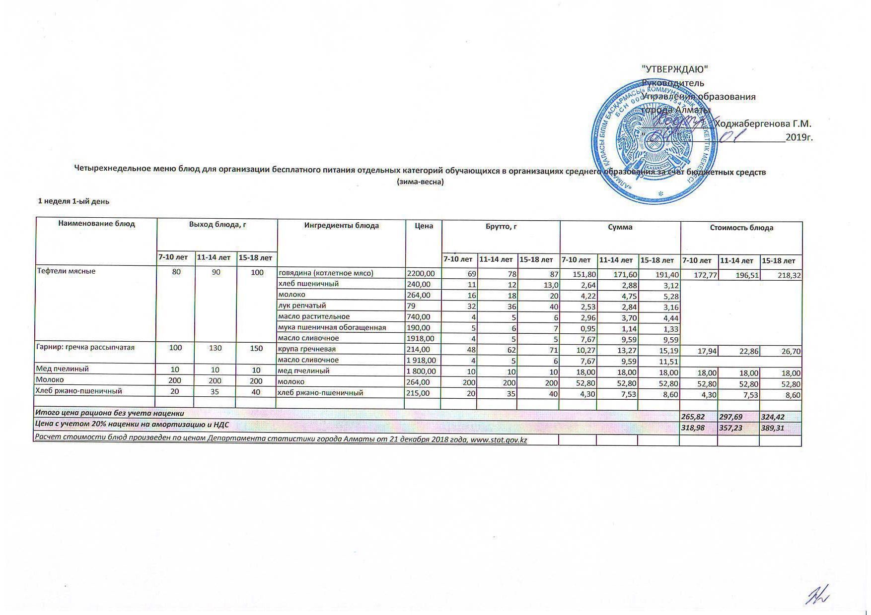 Четырехнедельное меню