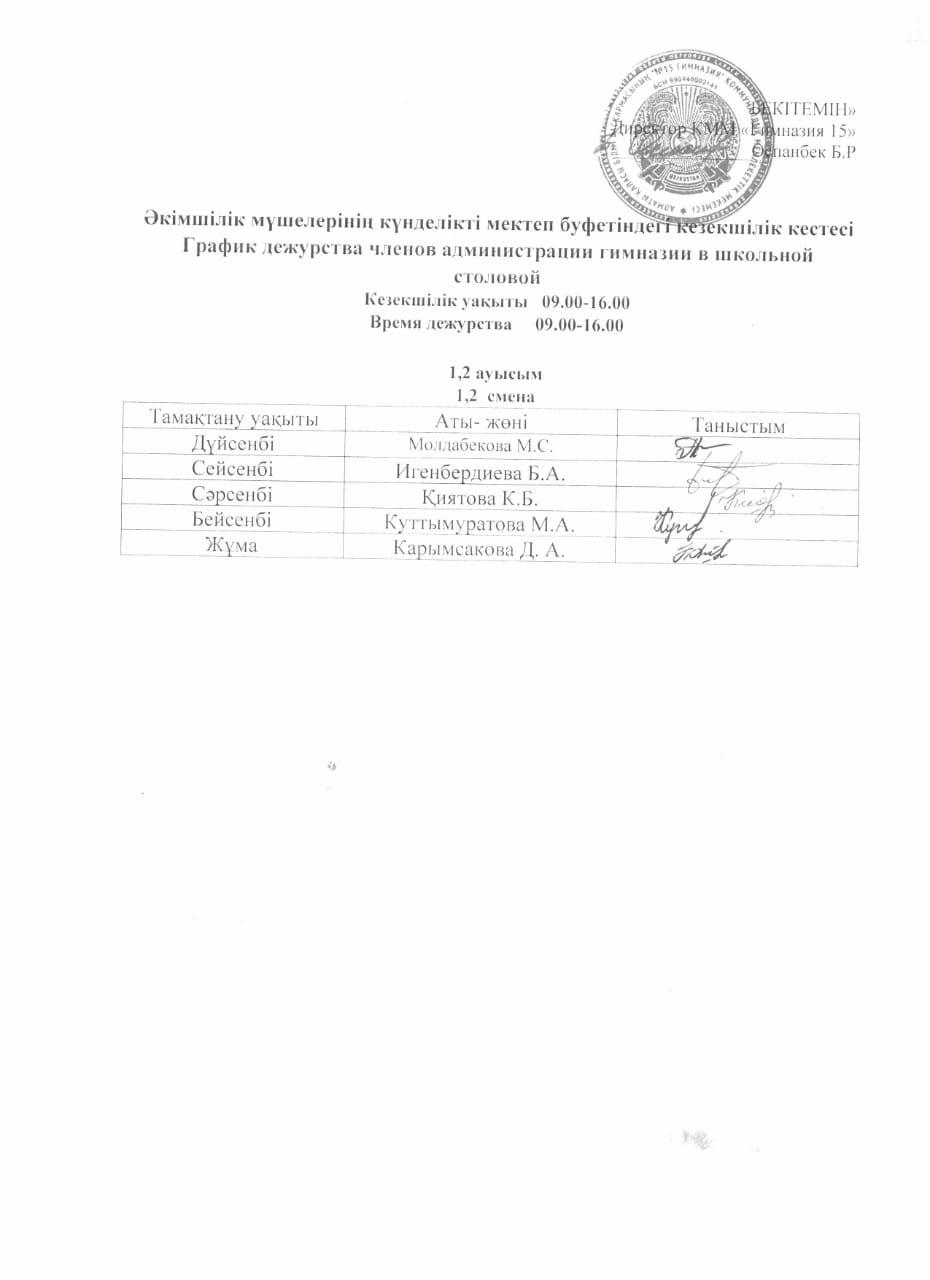 07 октябрь 2022 0 1 2 3 4 5 График дежурства членов администрации в буфете Осы беттің QR-коды:QR-код этой страницы: